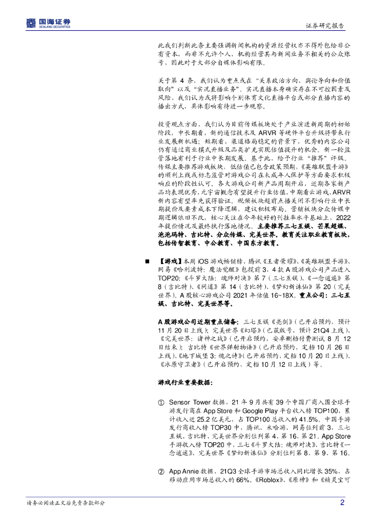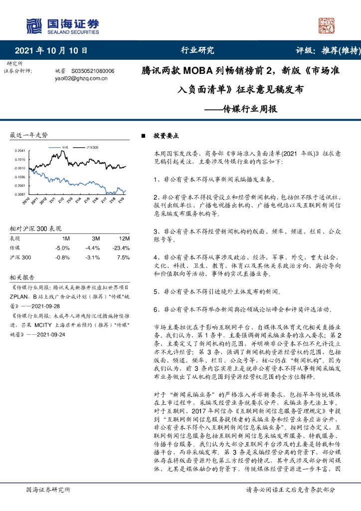 国海证券:传媒行业周报:腾讯两款MOBA列畅销榜前2,新版《市场准入负面清单》征求意见稿发布.pdf