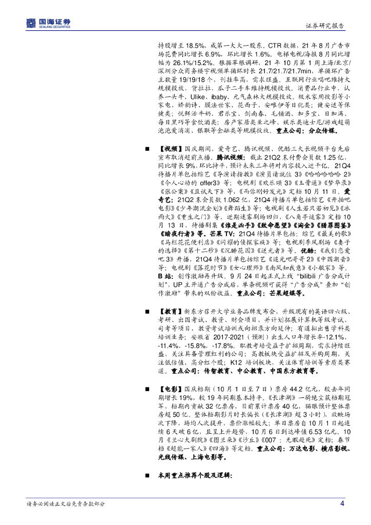 国信证券:传媒行业10月投资策略:持续看好游戏板块新品周期,把握影视内容及AI应用底部机会