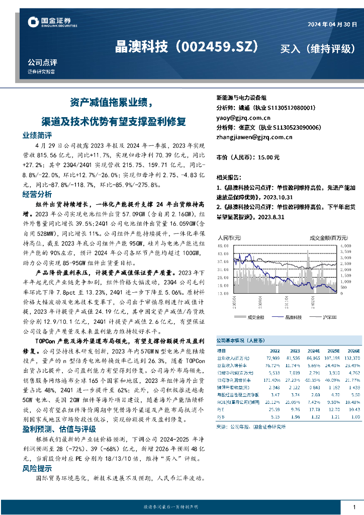国金证券:晶澳科技(002459)-资产减值拖累业绩,渠道及技术优势有望支撑盈利修复.pdf