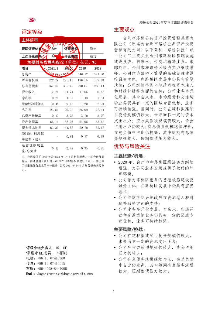 大公:台州市路桥公共资产投资管理集团有限公司主体信用评级报告及跟踪评级安排.pdf