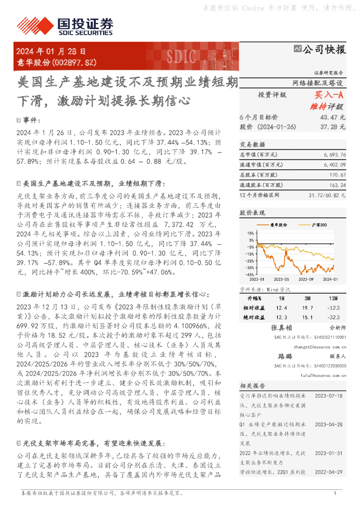 国投证券:意华股份(002897)-美国生产基地建设不及预期业绩短期下滑,激励计划提振长期信心.pdf