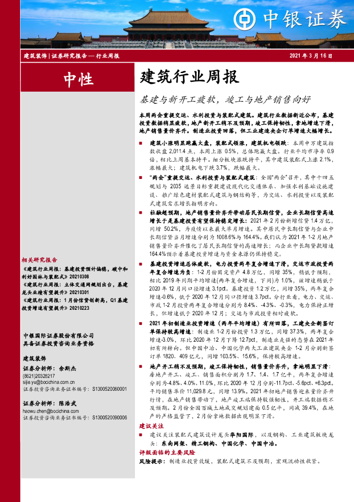 中银证券:建筑行业周报:基建与新开工疲软,竣工与地产销售向好.pdf