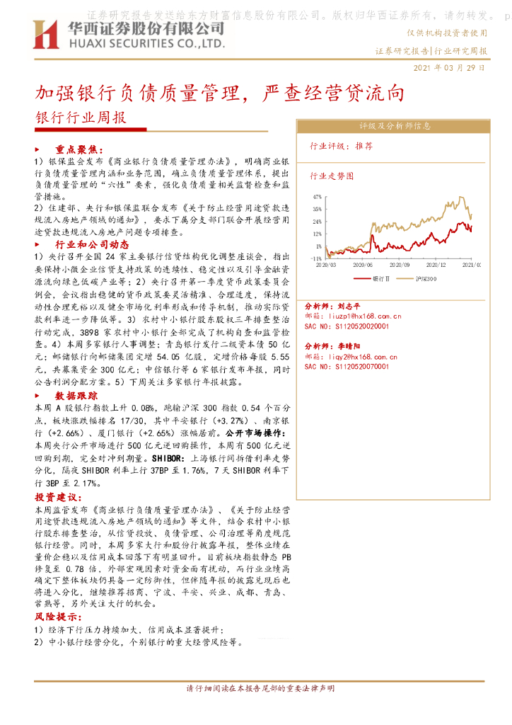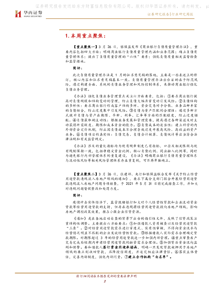 华西证券:银行行业周报:加强银行负债质量管理,严查经营贷流向.pdf