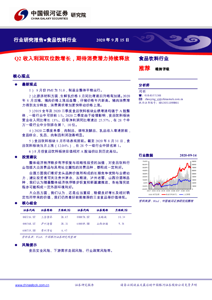 中国银河:食品饮料行业:Q2收入利润双位数增长,期待消费潜力持续释放.pdf