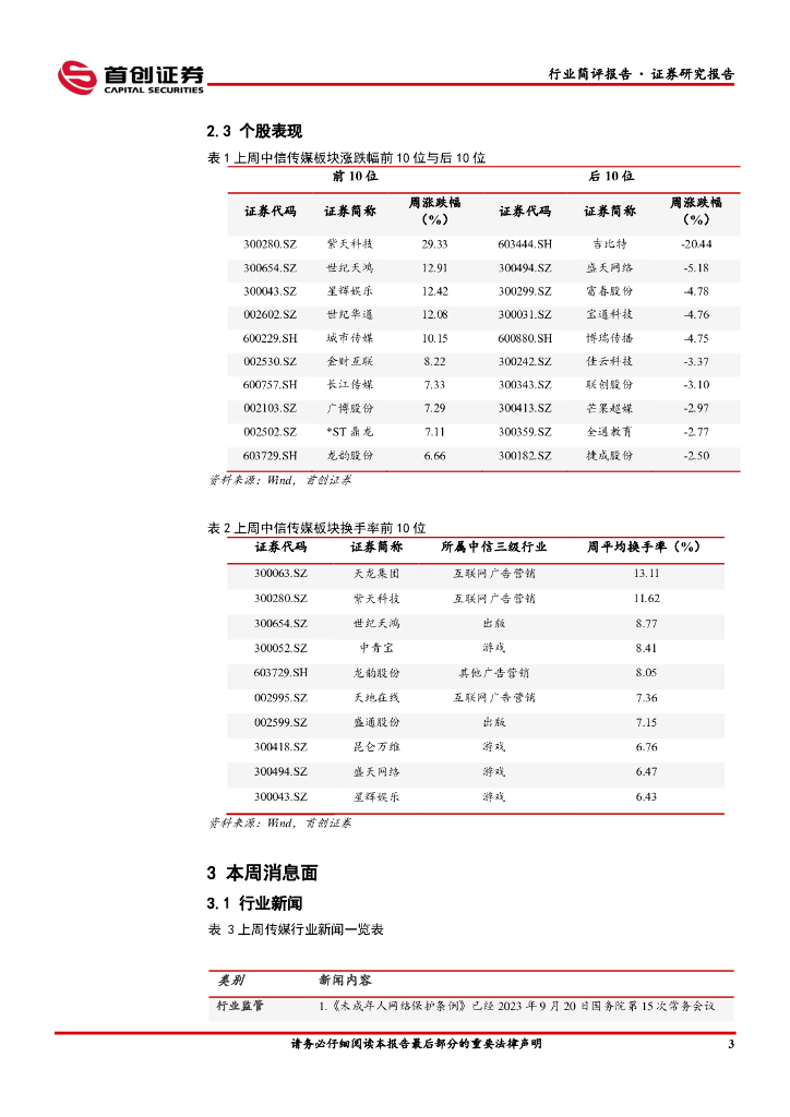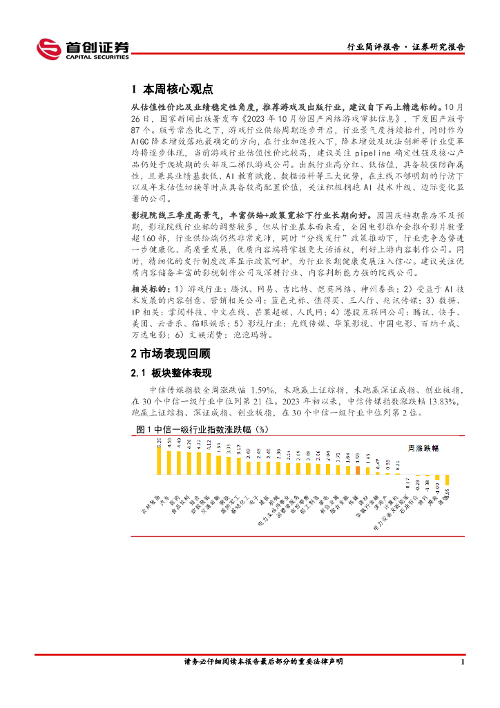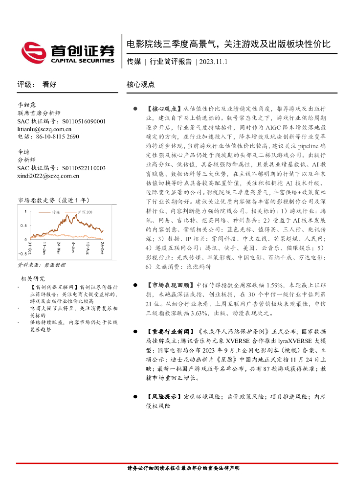 首创证券:传媒行业简评报告:电影院线三季度高景气,关注游戏及出版板块性价比.pdf