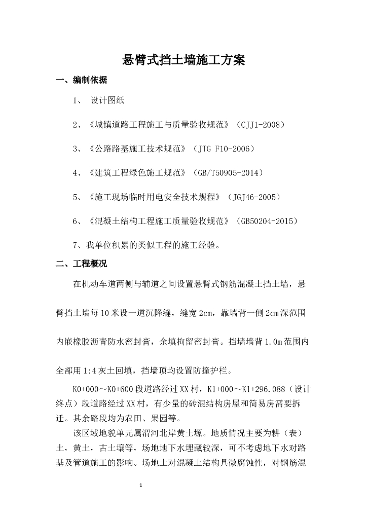 悬臂式钢筋混凝土挡土墙施工方案.doc