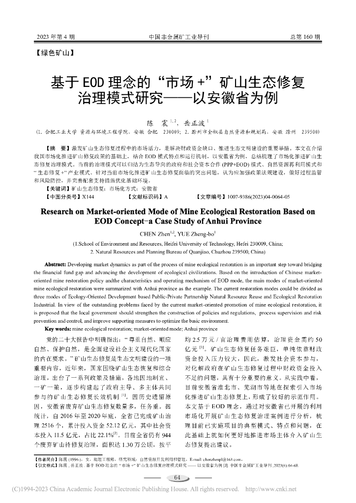 陈震:基于EOD理念的“市场+”矿山生态修复治理模式研究-以安徽省为例.pdf
