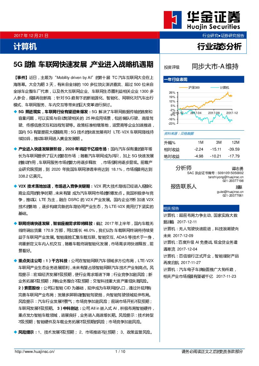 华金证券:计算机行业动态分析:5G助推车联网快速发展,产业进入战略机遇期.pdf
