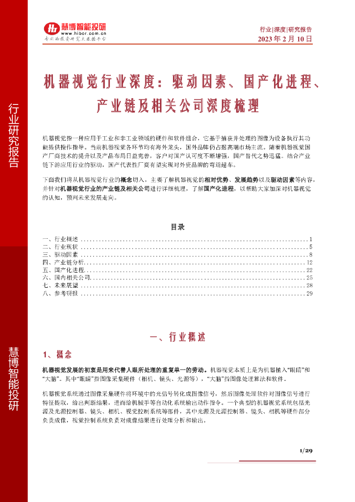 慧博智能投研:机器视觉行业深度:驱动因素、国产化进程、产业链及相关公司深度梳理.pdf
