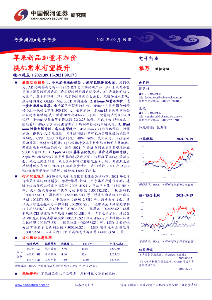 中国银河:电子行业周报:苹果新品加量不加价 换机需求有望提升.pdf