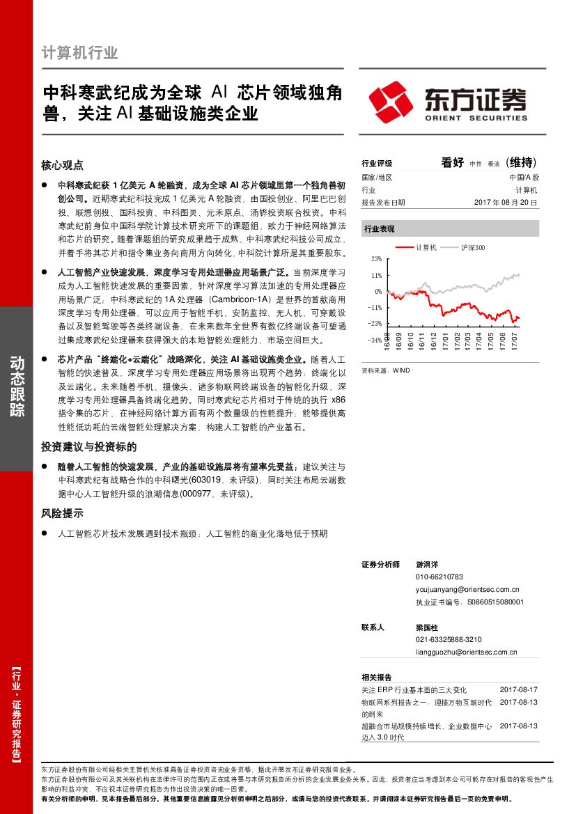 东方证券:计算机行业:中科寒武纪成为全球AI芯片领域独角兽,关注AI基础设施类企业.pdf