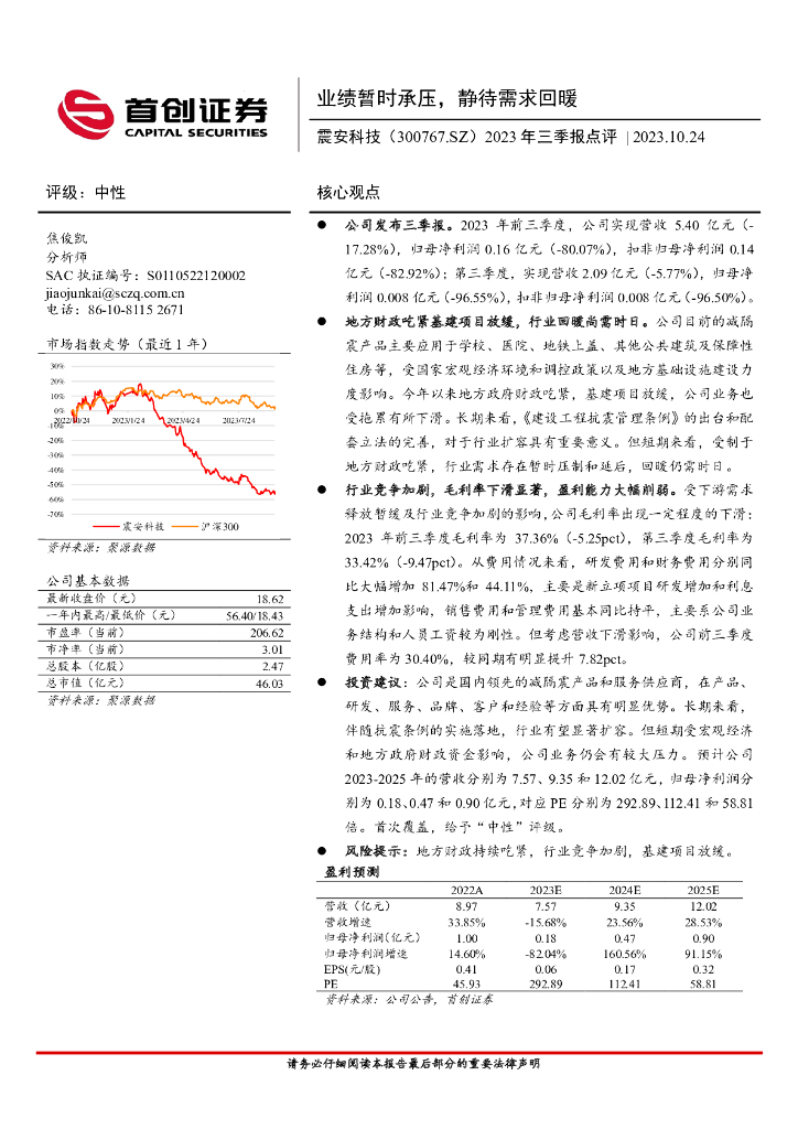 首创证券:震安科技(300767)-2023年三季报点评:业绩暂时承压,静待需求回暖.pdf