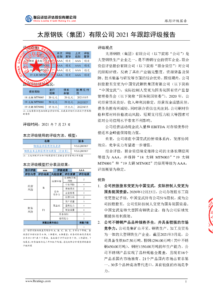 联合资信:太原钢铁(集团)有限公司2021年跟踪评级报告.pdf