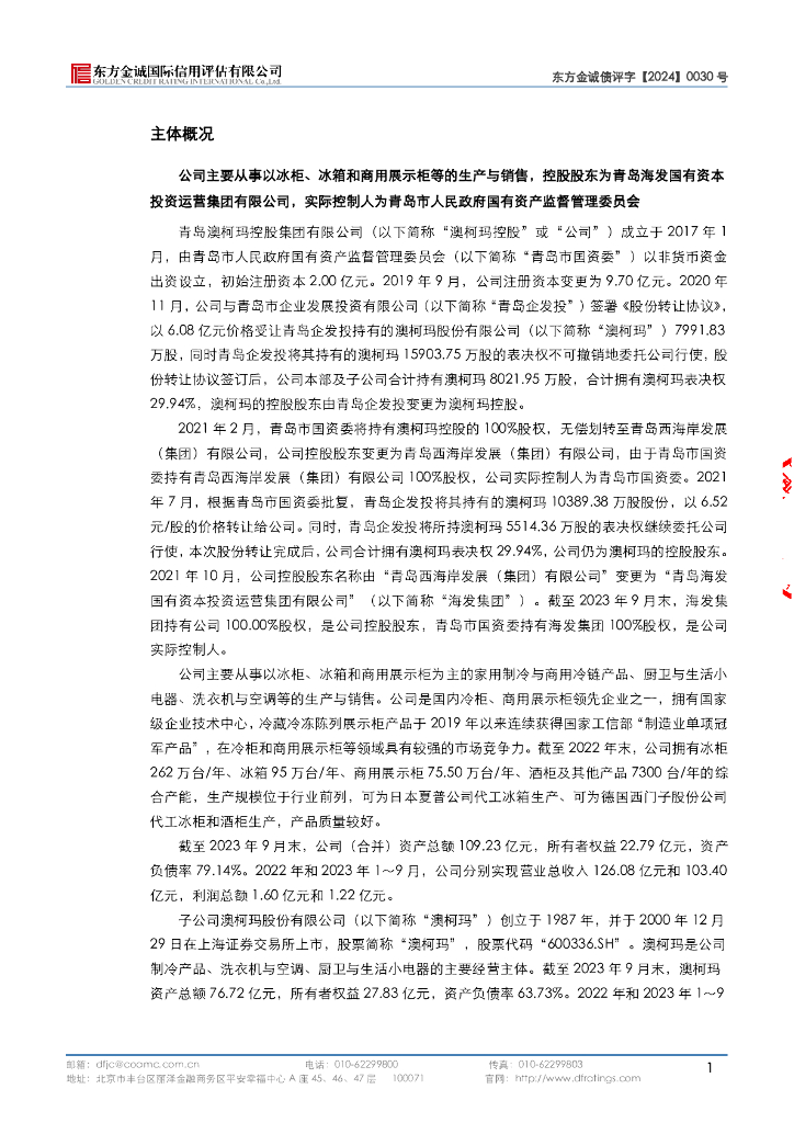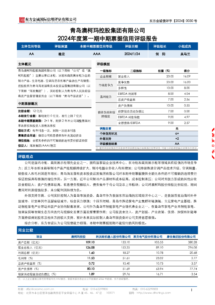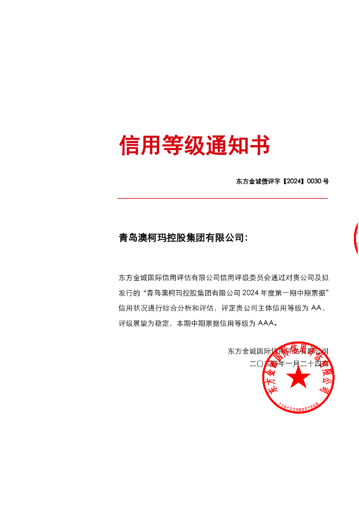 东方金诚:青岛澳柯玛控股集团有限公司2024年度第一期中期票据评级报告.pdf