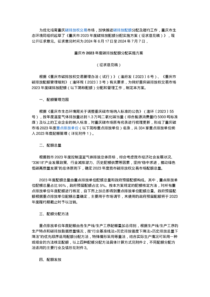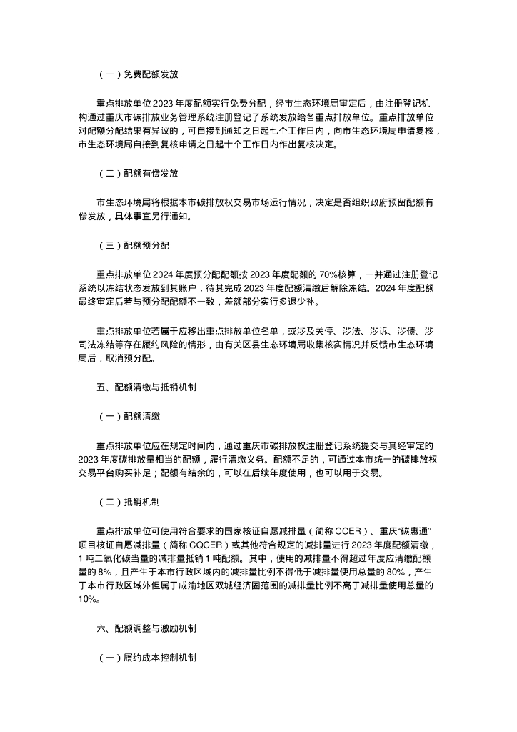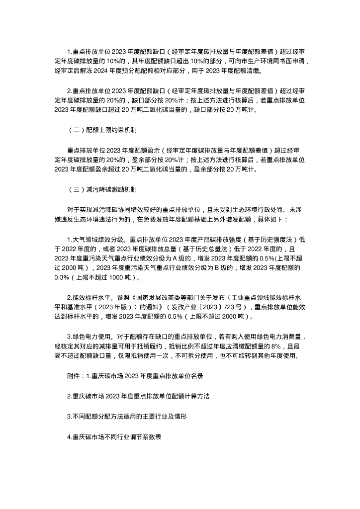 重庆市生态环境局:重庆市2023年度碳排放配额分配实施方案.doc