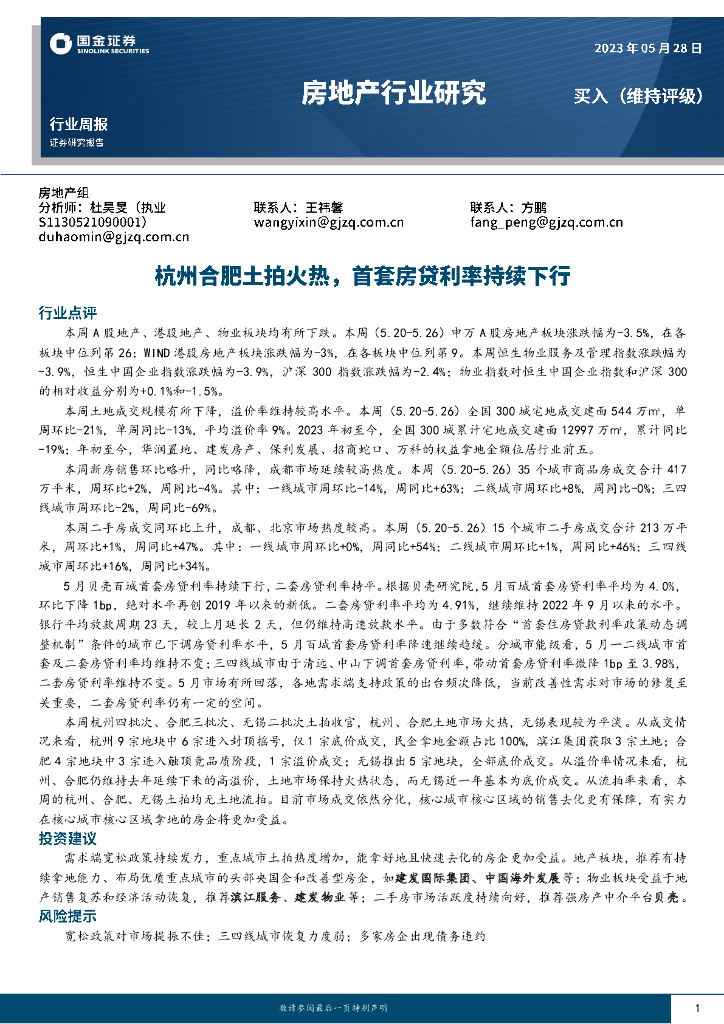国金证券:房地产行业周报:杭州合肥土拍火热,首套房贷利率持续下行.pdf