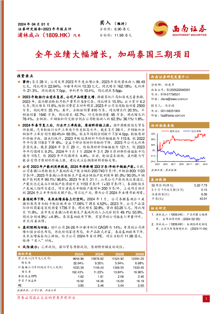 西南证券:浦林成山(01809)港股公司研究报告-2023年年报点评:全年业绩大幅增长,加码泰国三期项目.pdf