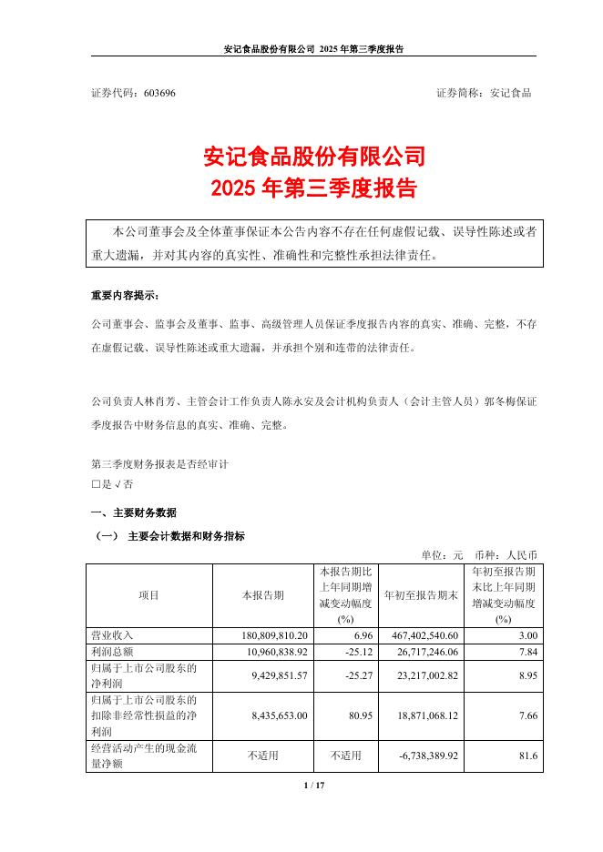 603696-安记食品:安记食品2025年第三季度报告.pdf