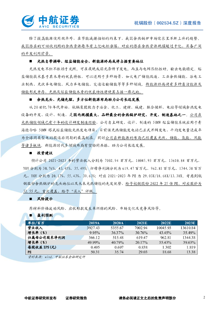 中航证券:杭锅股份(002534)-余热锅炉龙头、光热储能先驱,碳中和时代二次成长可期.pdf
