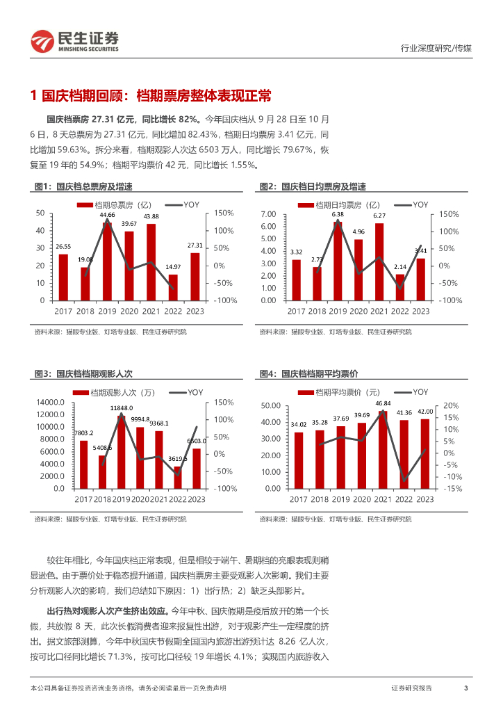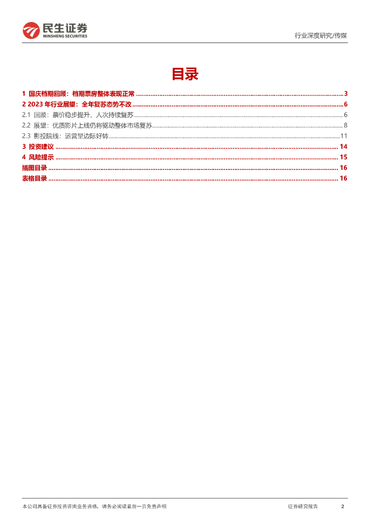 民生证券:国庆档电影表现回顾及2023年展望:电影院线行业全年复苏态势不改.pdf