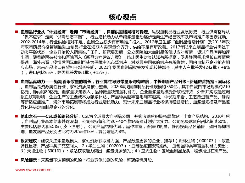 西南证券:血制品行业研究框架与投资逻辑.pdf