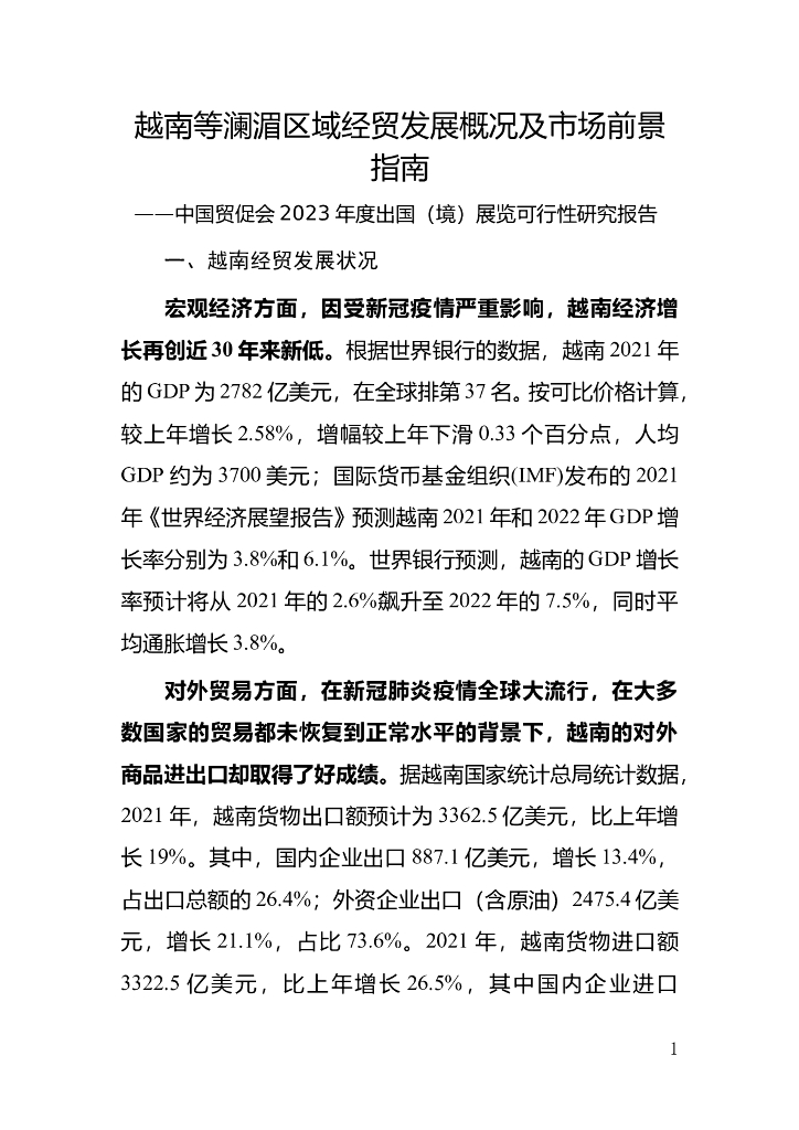 中国贸促会:越南等澜湄区域经贸发展概况及市场前景指南——2023年度出国(境)展览可行性研究报告.doc