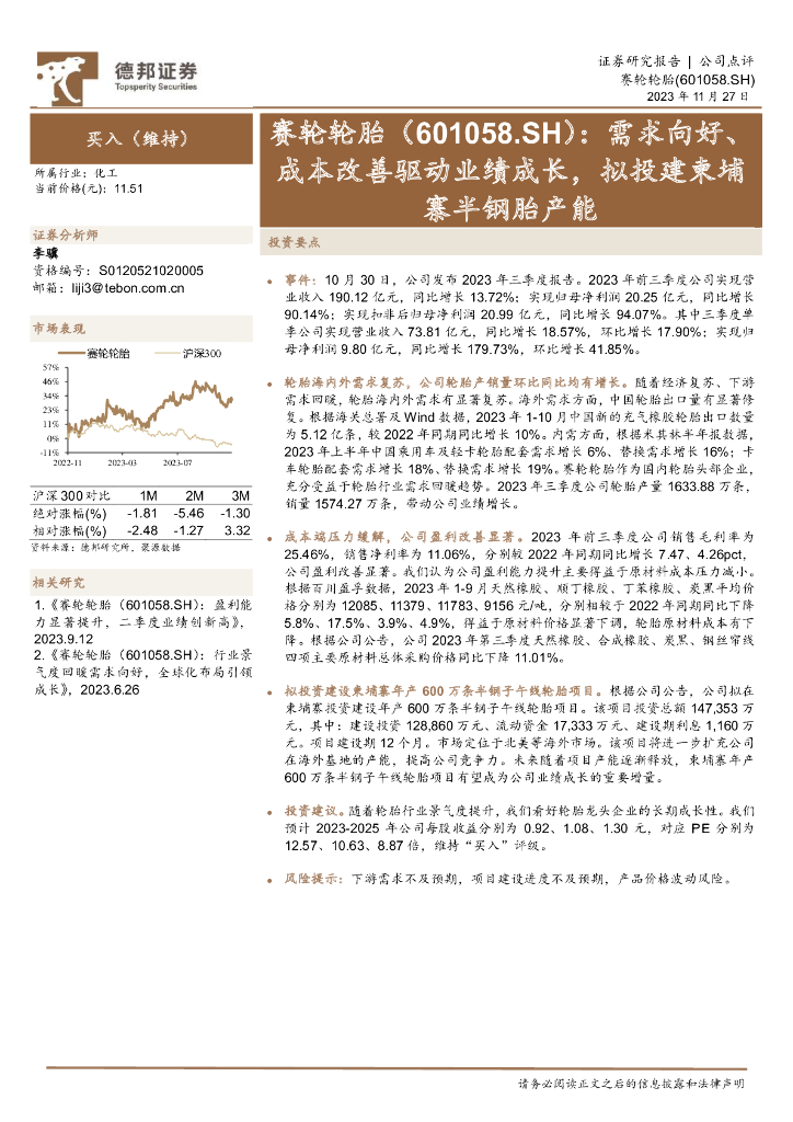 德邦证券:赛轮轮胎(601058)-需求向好、成本改善驱动业绩成长,拟投建柬埔寨半钢胎产能.pdf