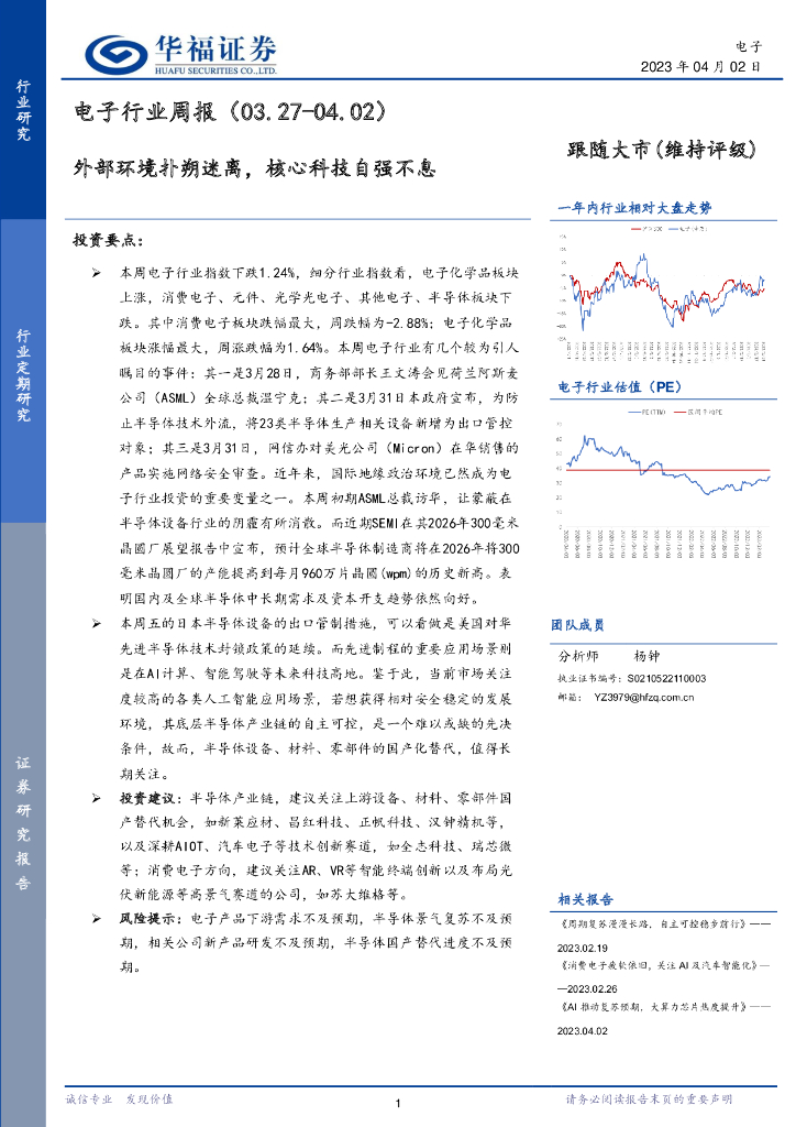 华福证券:电子行业周报:外部环境扑朔迷离,核心科技自强不息.pdf
