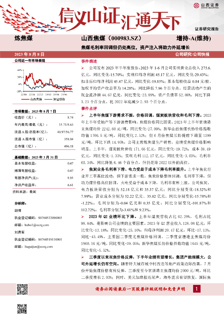 山西证券:山西焦煤(000983)-焦煤毛利率回调但仍处高位,资产注入将助力外延增长.pdf