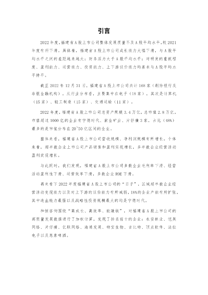 和恒咨询:福建省A股上市公司高质量发展报告(2022年报).pdf