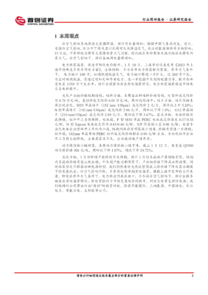 首创证券:公用事业行业简评报告:电力供需偏紧,促进市场化电价提升.pdf