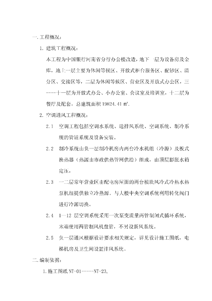 河南省某银行分行办公楼改造通风空调施工方案.pdf