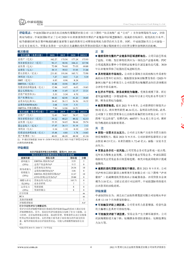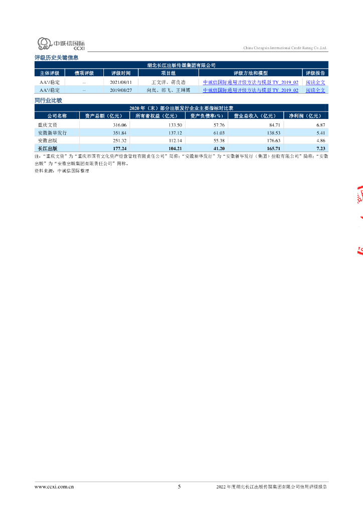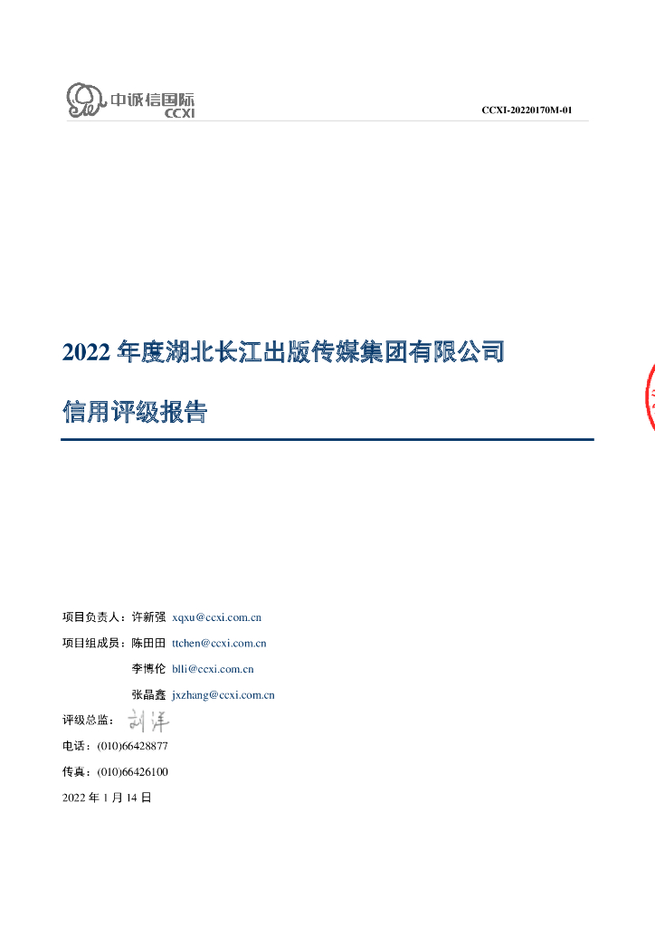 中诚信:湖北长江出版传媒集团有限公司2022年主体信用评级报告及跟踪评级安排.pdf