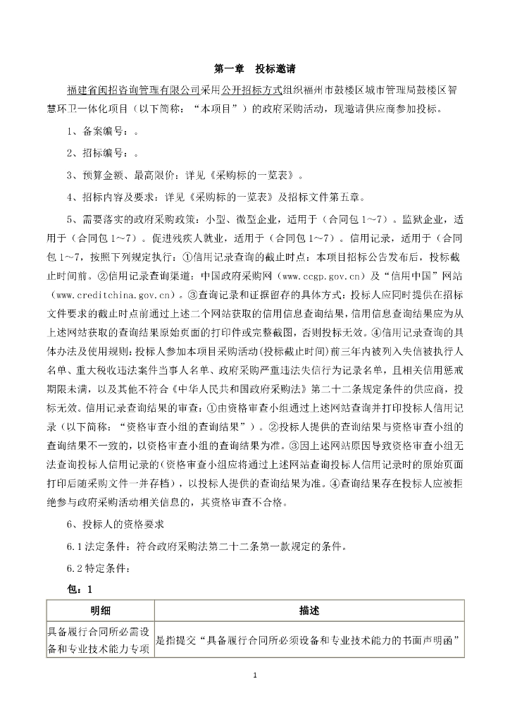 福州市鼓楼区城市管理局鼓楼区智慧环卫一体化项目 招标文件.pdf