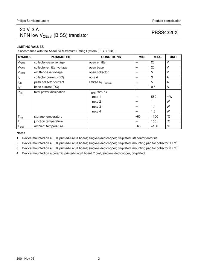 philips PBSS4320X 20 V, 3 A NPN low VCEsat (BISS) transistor 数据手册.pdf