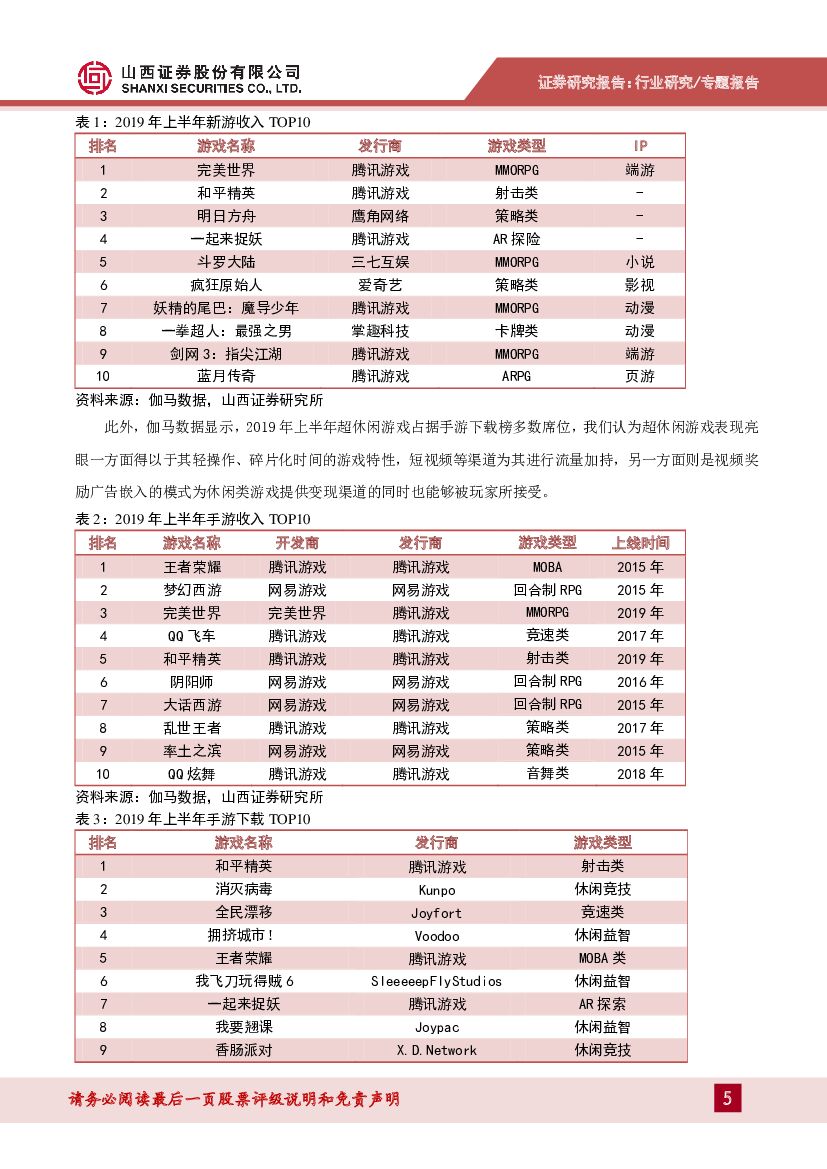 山西证券:2019年游戏行业年中复盘:版号重启市场回暖,高质量发展更待精耕细作.pdf