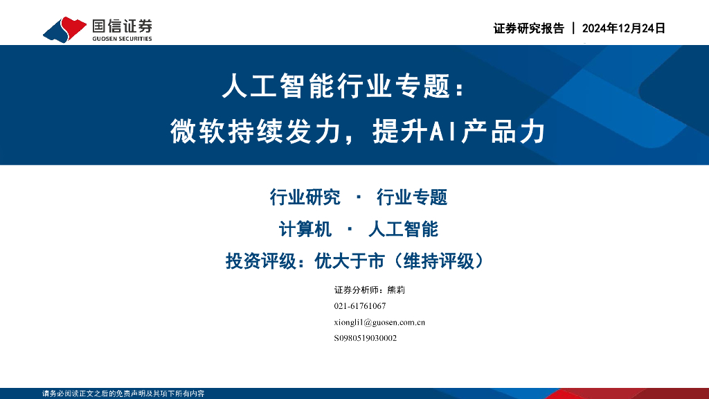 国信证券:人工智能行业专题:微软持续发力,提升AI产品力.pdf