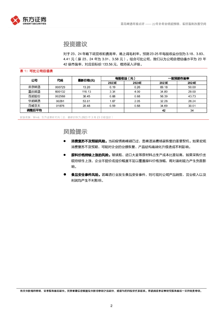 东方证券:青岛啤酒(600600)-22年全年业绩超预期,看好盈利改善空间.pdf