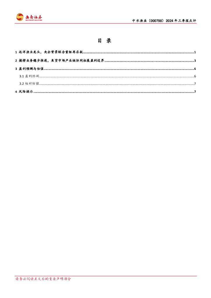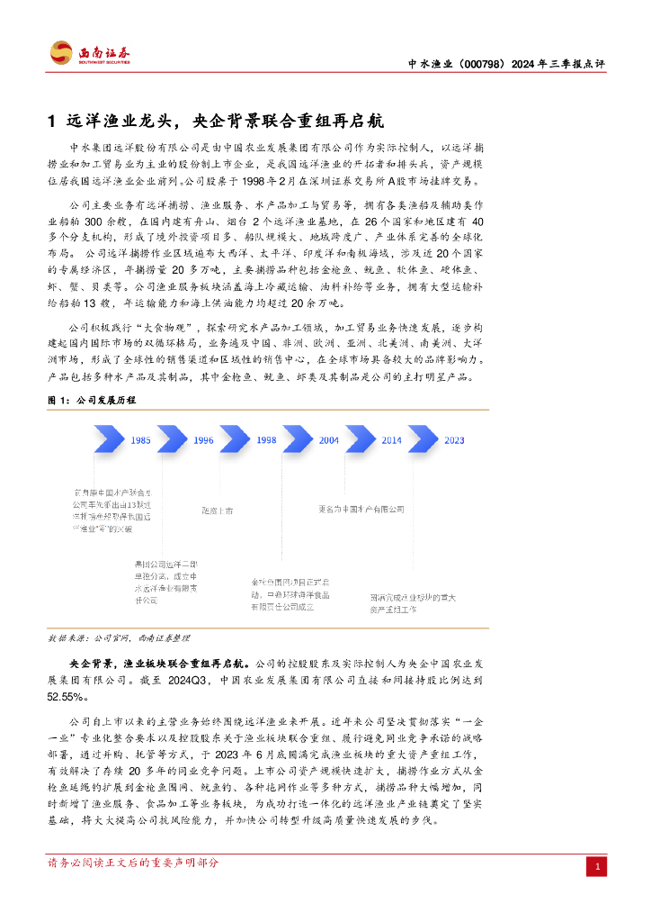 西南证券:中水渔业(000798)-2024年三季报点评:远洋渔业龙头,渔业板块联合重组再启航.pdf