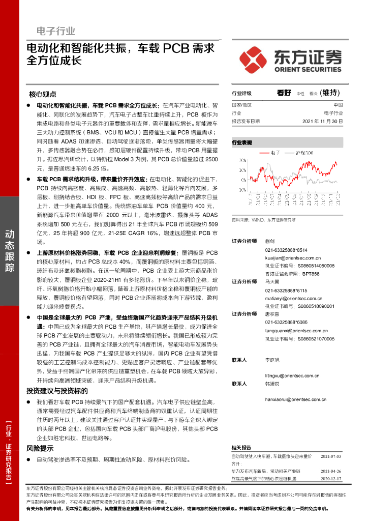 东方证券:电子行业:电动化和智能化共振,车载PCB需求全方位成长.pdf