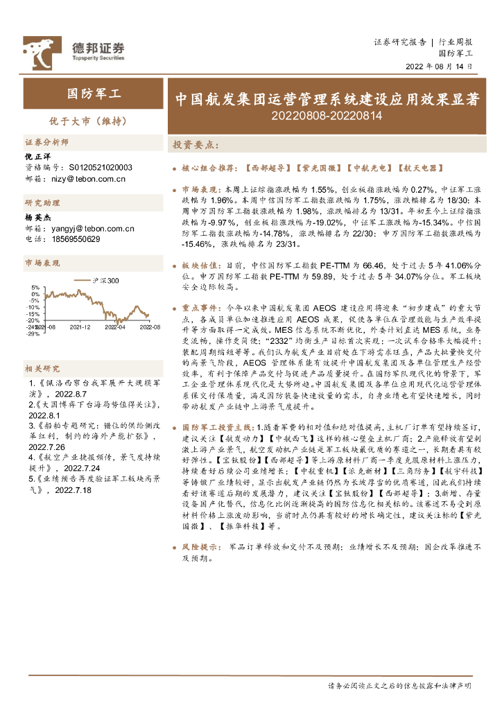 德邦证券:国防军工行业周报:中国航发集团运营管理系统建设应用效果显著.pdf