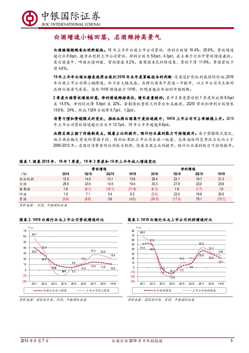 中银国际:白酒行业2019年半年报综述:增速小幅回落,名酒维持高景气.pdf