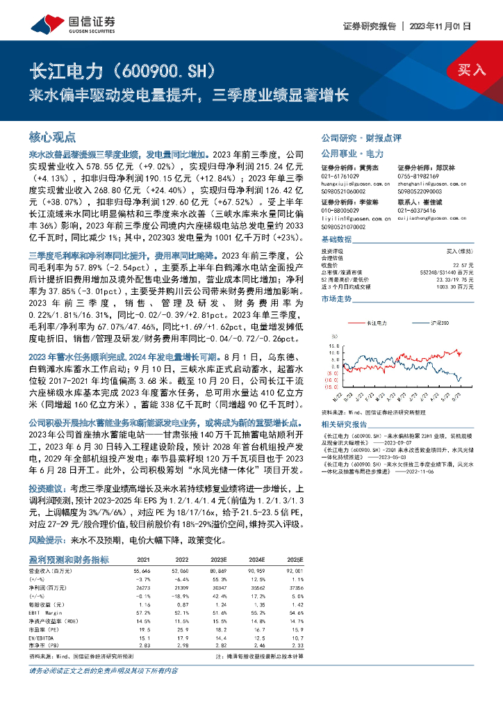 国信证券:长江电力(600900)-来水偏丰驱动发电量提升,三季度业绩显著增长.pdf