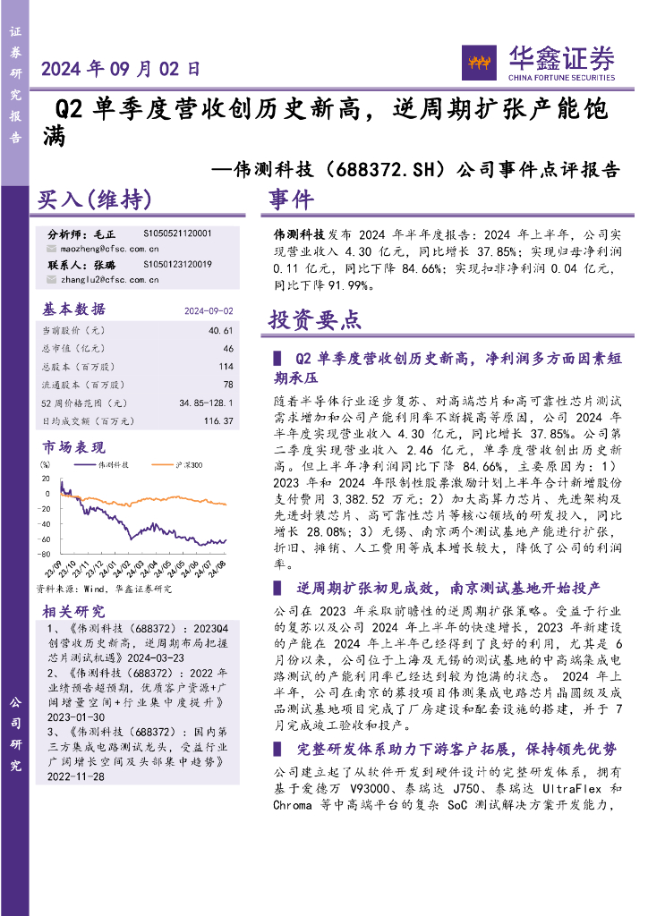 华鑫证券:伟测科技(688372)-公司事件点评报告:Q2单季度营收创历史新高,逆周期扩张产能饱满.pdf