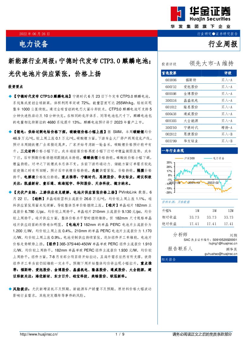华金证券:新能源行业周报:宁德时代发布CTP3.0麒麟电池;光伏电池片供应紧张,价格上扬.pdf