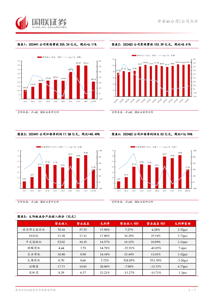国联证券:太阳纸业2024年中报点评:收入稳健盈利亮眼,产能建设有序推进.pdf
