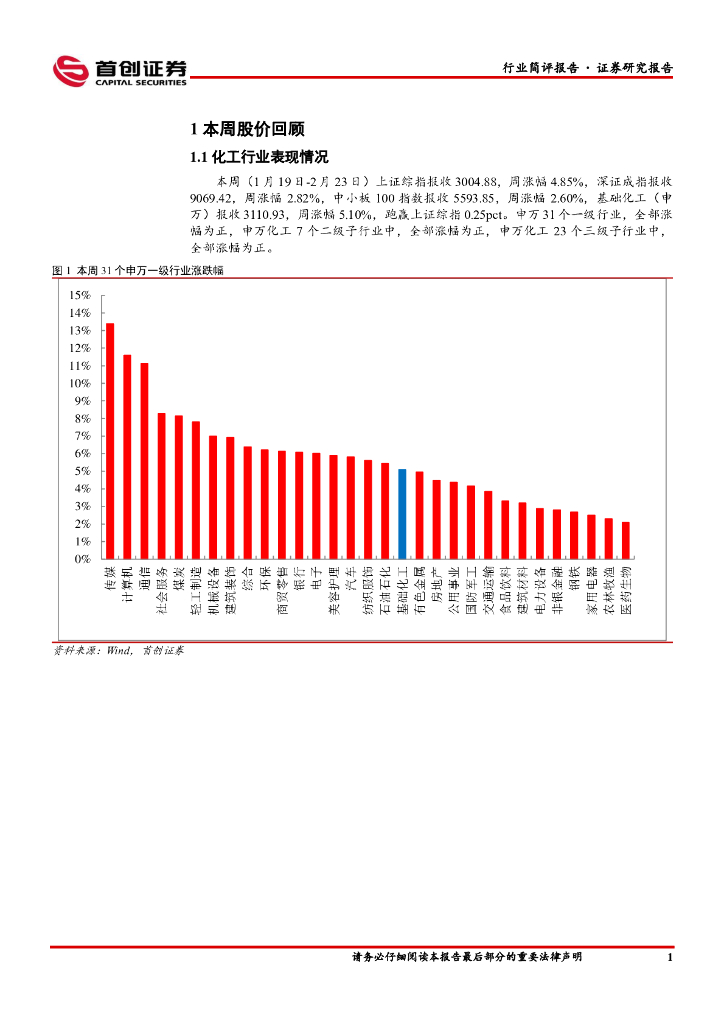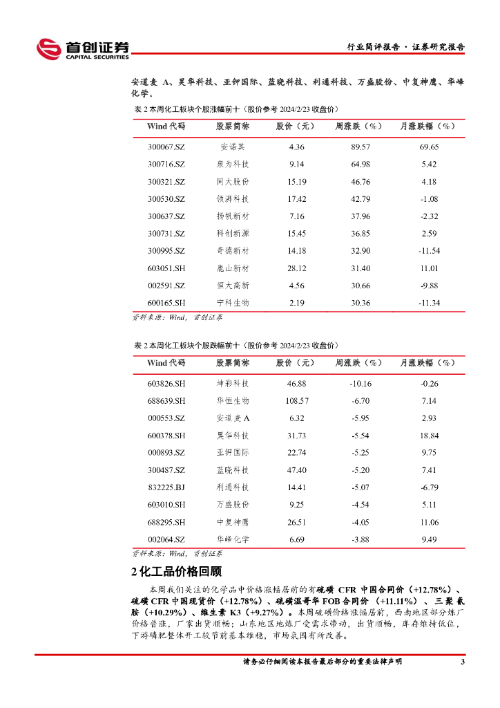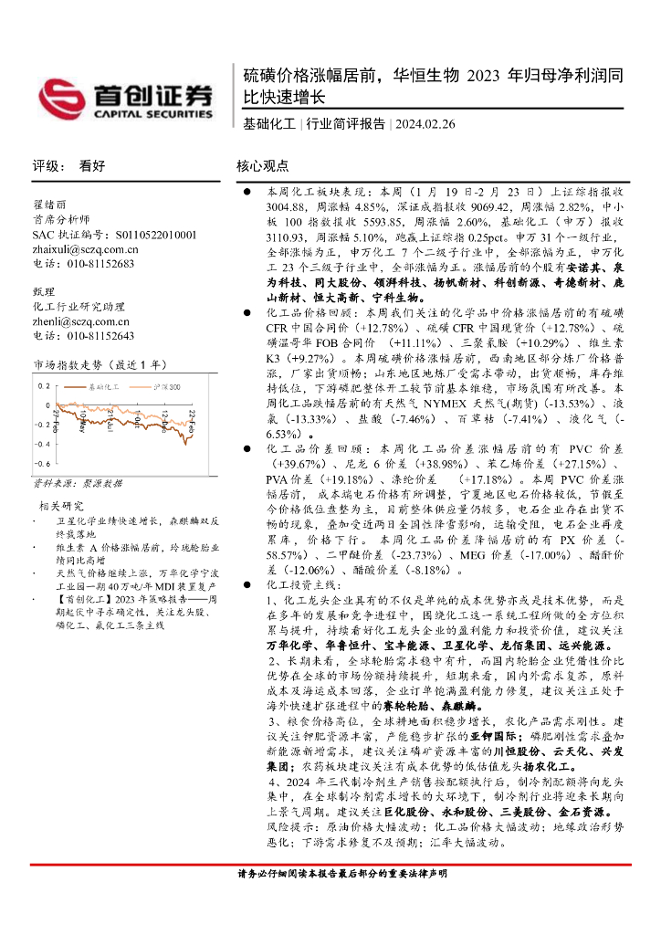 首创证券:基础化工行业简评报告:硫磺价格涨幅居前,华恒生物2023年归母净利润同比快速增长.pdf