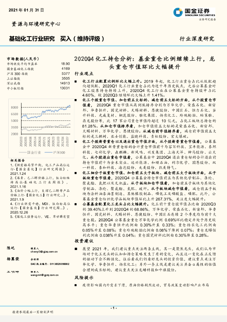 国金证券:基础化工行业研究:2020Q4化工持仓分析:基金重仓比例继续上行,龙头重仓市值环比大幅提升.pdf