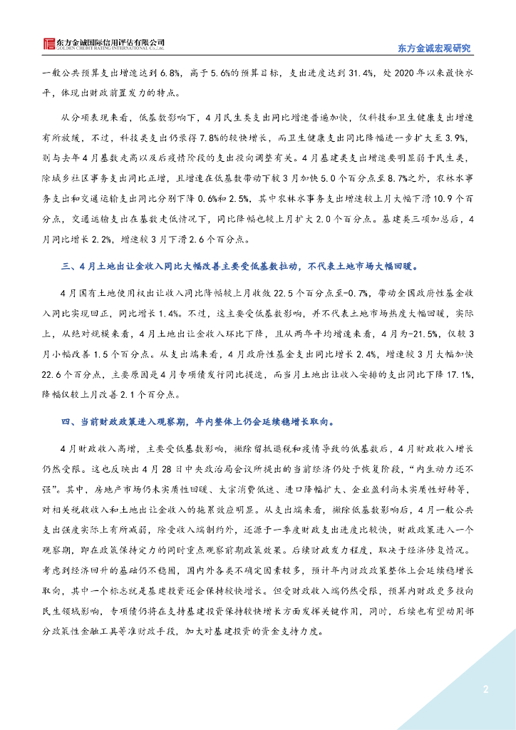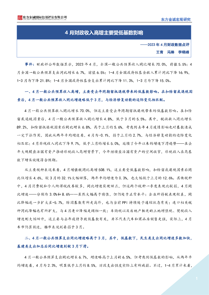 东方金诚:4月财政收入高增主要受低基数影响-2023年4月财政数据点评.pdf
