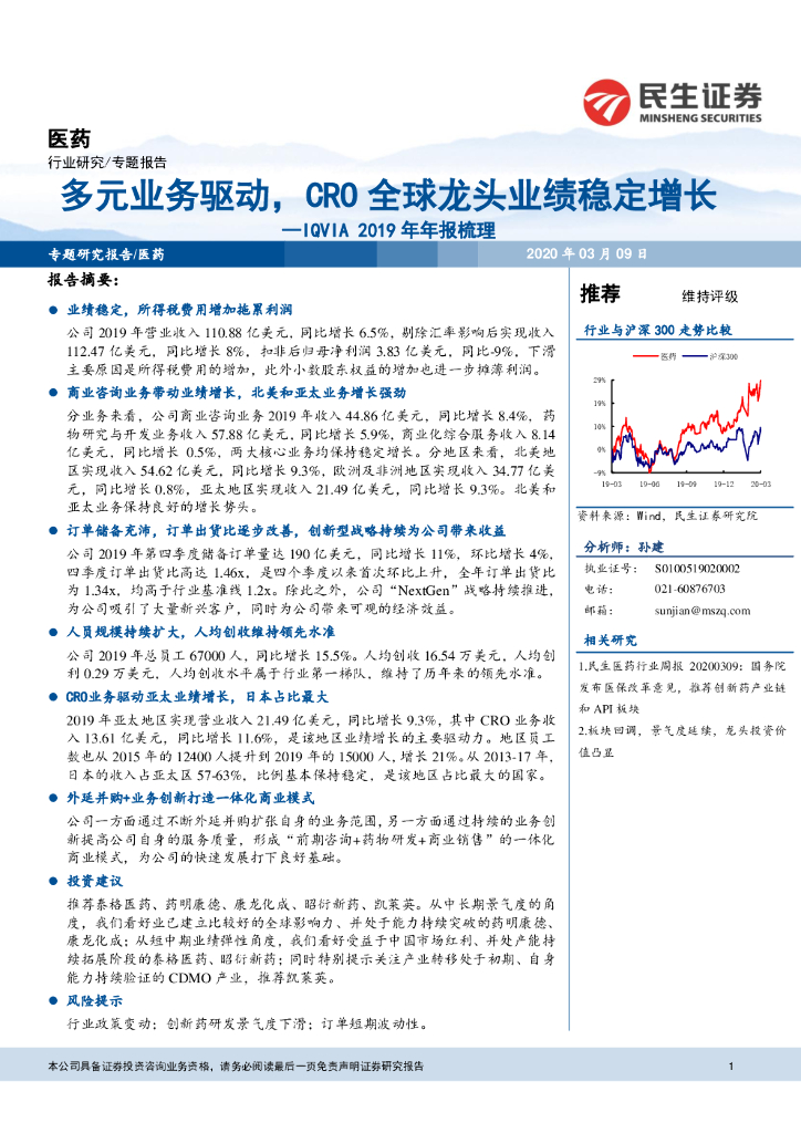 民生证券:医药:IQVIA2019年年报梳理:多元业务驱动,CRO全球龙头业绩稳定增长.pdf